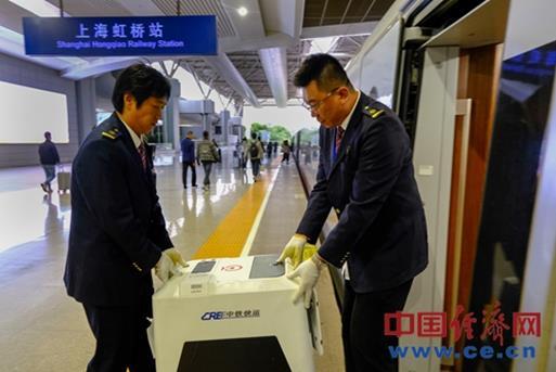 工作人员将宠物托运箱送至高铁车厢。(杨宝森/摄)