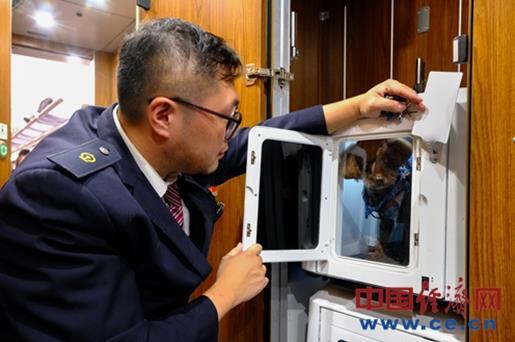 高铁运行中工作人员巡视宠物实时动态情况。(杨宝森/摄)