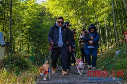 携宠游客在安吉大竹海游玩体验。(杨宝森/摄)