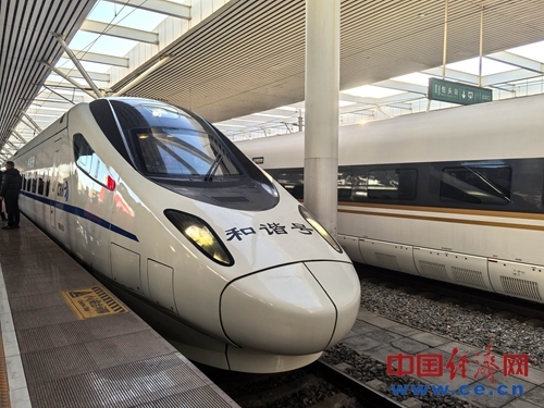 首发动车组列车D4667 整装待发。 中国经济网记者 魏金金 摄