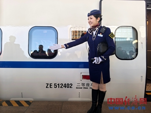 列车长提醒旅客注意安全。 中国经济网记者 魏金金 摄