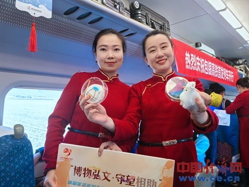 内蒙古博物院工作人员在车上推介内蒙古文化。中国经济网记者 魏金金 摄