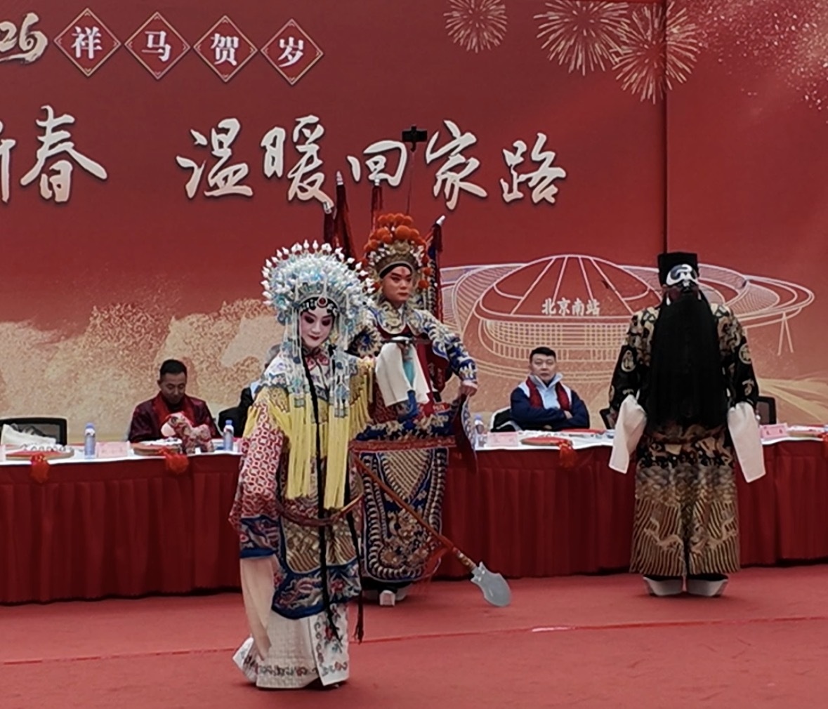 2月10日农历小年,北京南站候车大厅上演戏曲快闪。中国经济网记者鞠然/摄