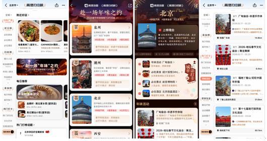 针对春节多元化的出游需求,高德扫街榜基于平台真实出行大数据,筛选出最具本地特色的体验点,正式发布“2026春节年味指南”。该指南聚焦北京、西安、泉州、潮州、哈尔滨、广州等20个年味浓郁的热门城市,为用户提供吃喝玩乐一站式的消费决策指引。
