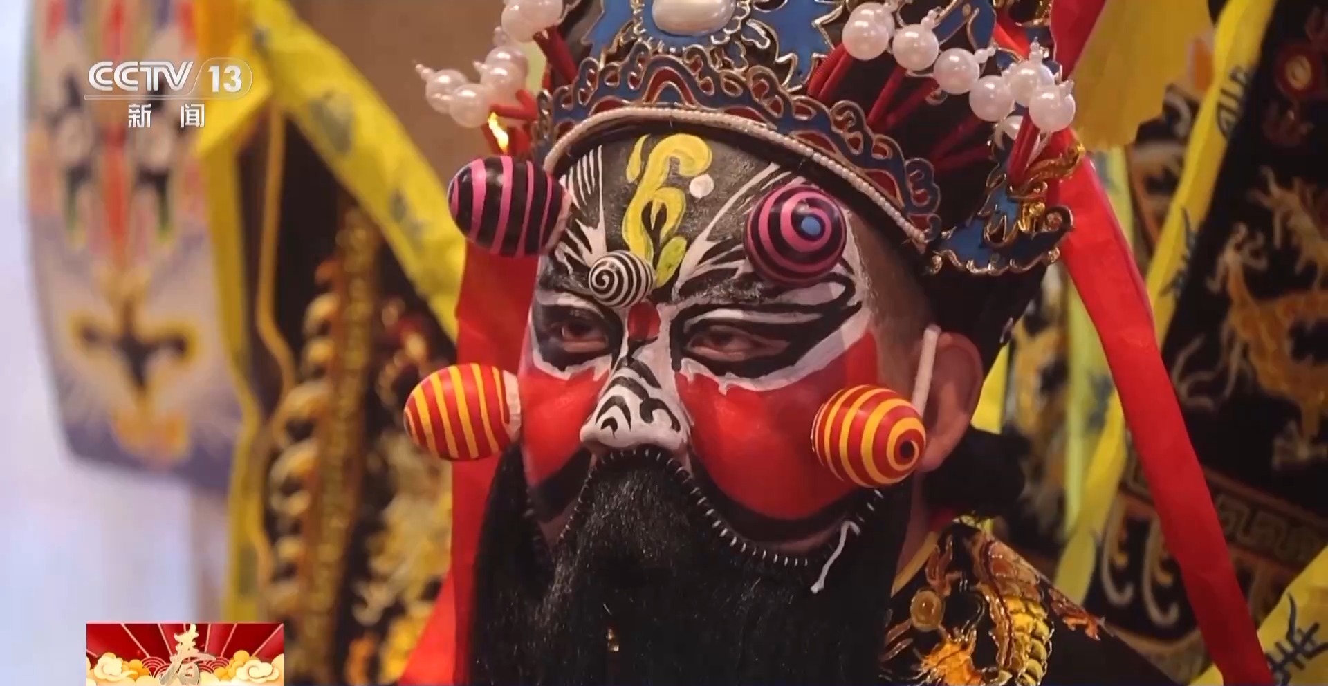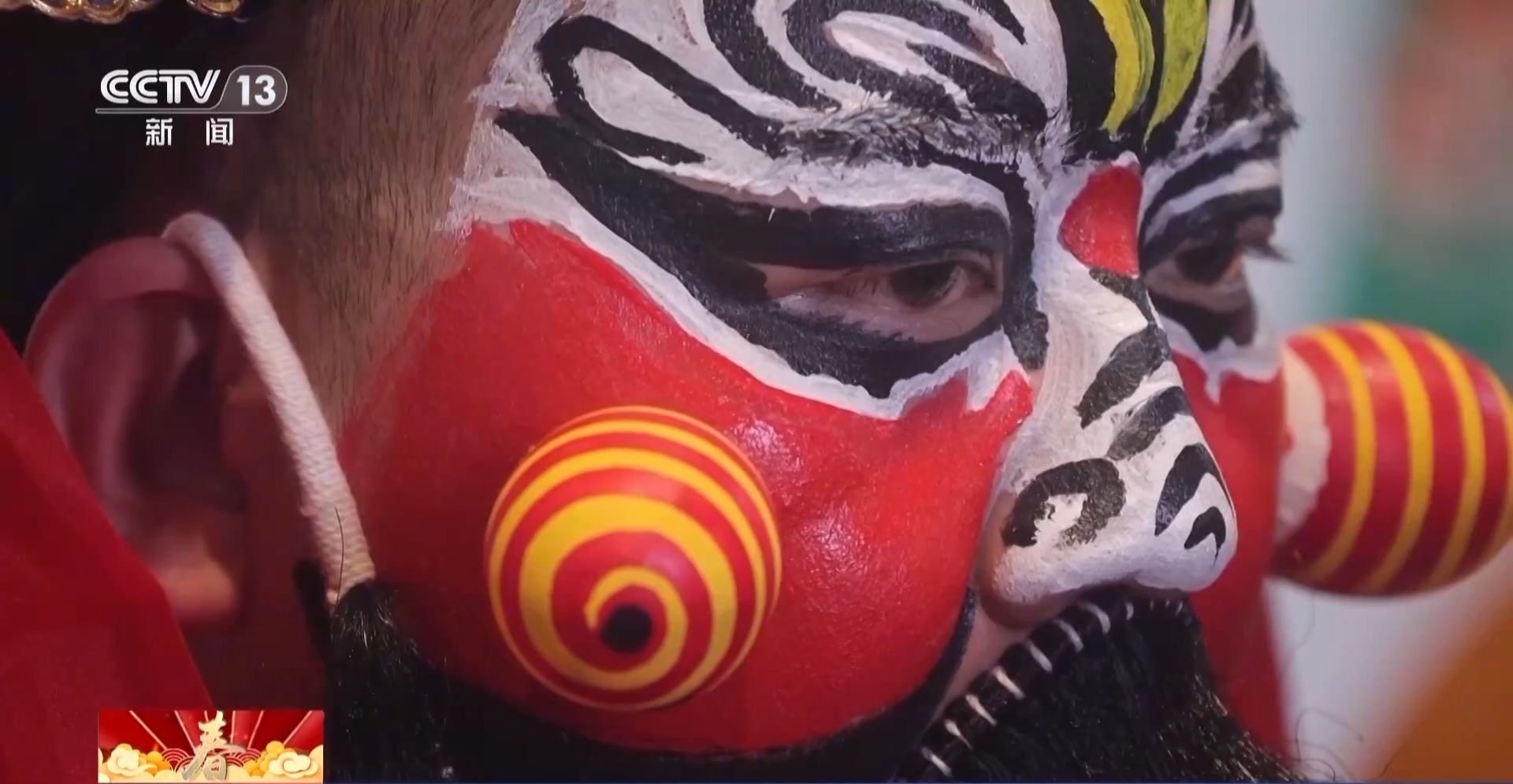 总台央视记者 何莉:这个角色就是社火当中的黑虎赵公明,人们认为他可以除瘟消灾、带来财运。他脸上凸起,看起来非常立体,而这些凸起就是用普通的鸡蛋壳制作而成。