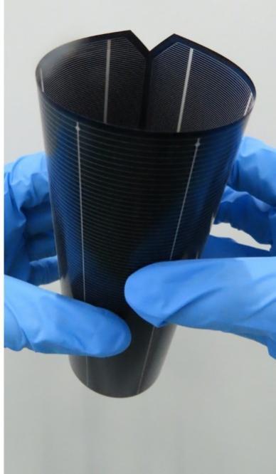 基于该技术制备的超薄柔性叠层电池(约60微米),在实验室尺寸上获美国可再生能源实验室认证,效率达33.4%;在全硅片尺寸上效率达29.8%,双双创下该类型器件世界纪录。其功率重量比高达1.77瓦/克,轻量化优势显著。