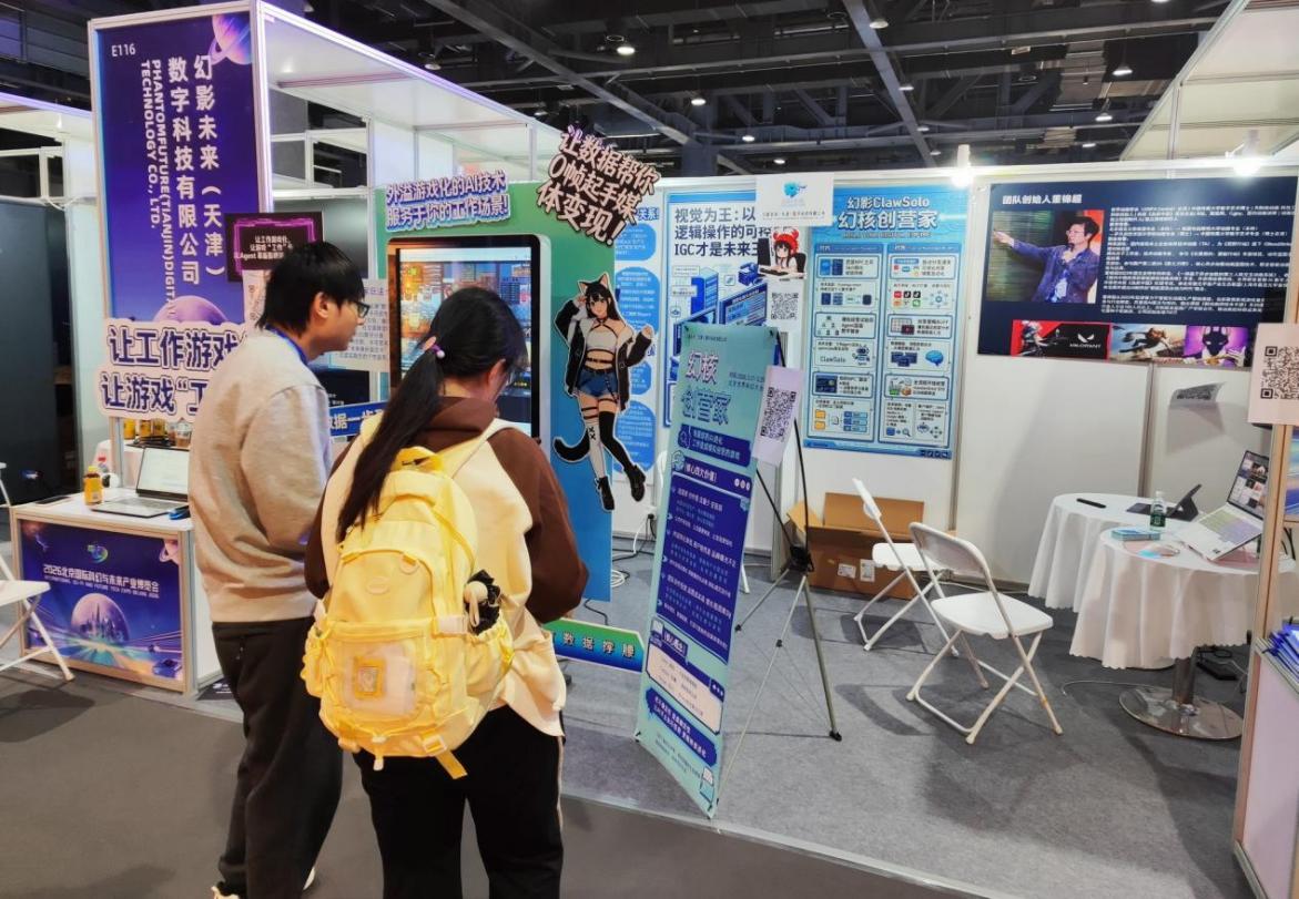 展馆内,幻影未来(天津)数字科技有限公司的展位上显示着像素风格的办公室界面,吸引着观众驻足。“我们使用数字人和像素风办公室界面作为前端,让用户和Agent互动更为直接简单,真正实现‘工作变得像游戏一样简单’。”董锦超介绍,幻影未来是一家游戏与动画垂类的技术型“OPC”,目前专注于AI Agent智能体技术自动化应用,包含影视动画、游戏交互、泛娱乐等,今年主打的核心产品是面向C端和小B端的ClawSolo项目。董锦超透露,除该项目外,他们深耕游戏和动画垂类,与一些大厂达成长期合作开发,与AI短剧平台做联合出品和制片任务。