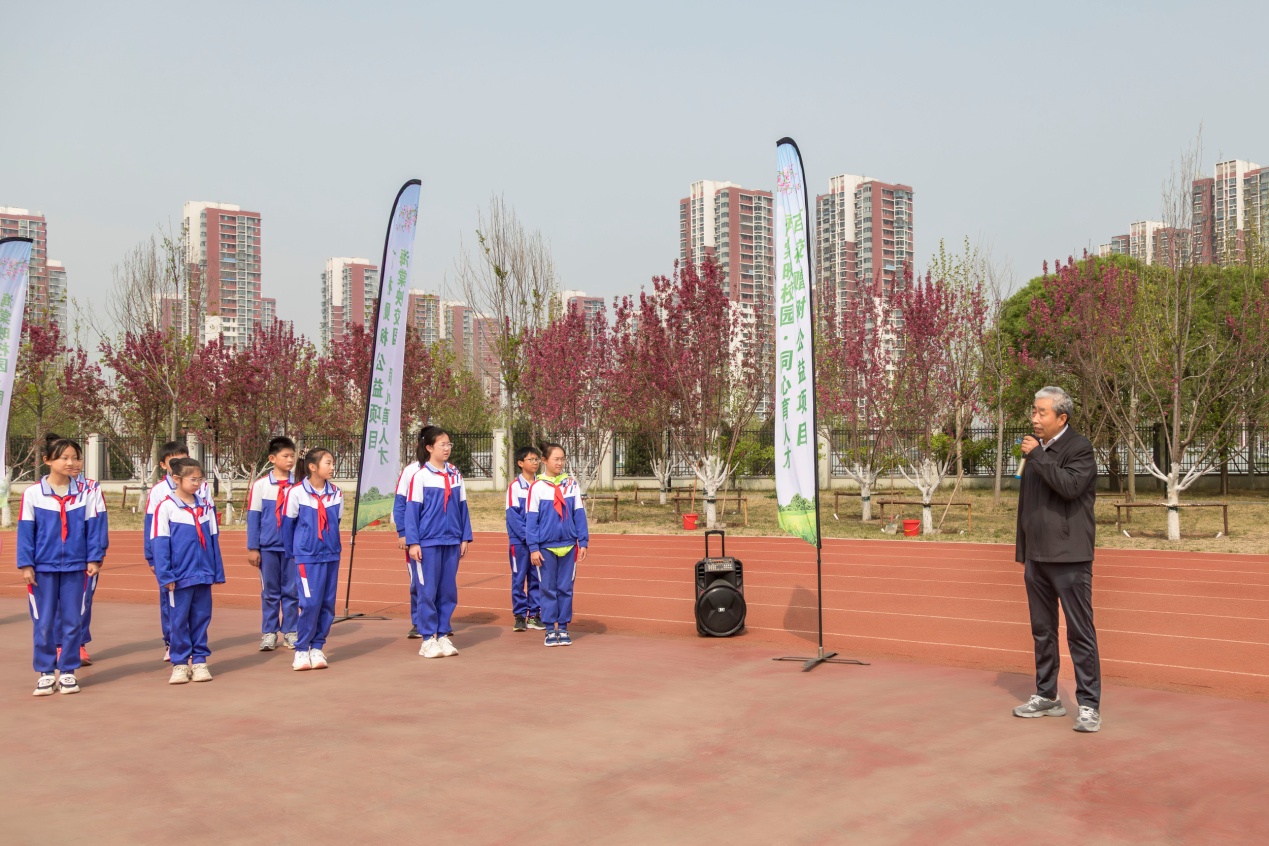 通州区教育委员会副主任王冬生结合通州区的发展规划表示,当前通州区正着力打造“花海副中心”,校园本应是美丽的花园,老师是辛勤的园丁,学生则是绽放的花朵。本次活动的主题与副中心建设行动高度契合,为校园绿化与教育发展带来了新的契机。他还分享了三点希望:受赠学校要精心管好、护好每一株海棠树,让校园处处皆风景、时时有教育;同学们要以此次活动为契机,积极践行爱绿、植绿、护绿的理念,从小树立生态文明意识;社会各界继续关心、支持通州教育,凝聚家校社协同育人的强大合力,共同为孩子们的成长创造良好环境。