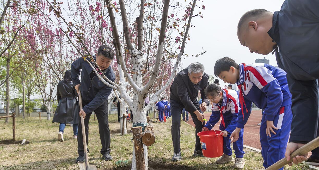 “今天种下的不仅是花木,更是生态文明的种子。学校将把爱绿护绿融入日常教学,引导学生在护树过程中培育环保意识,砥砺责任担当,构建学校主导、家庭参与、社会支持的大育人格局。”北京景山学校通州分校党委书记张金霞表示,本次活动秉持“树木如树人”的理念,将生态教育与立德树人紧密结合,是服务社会与履行教育使命的生动实践。北京景山学校通州分校扎根副中心,以培养兼具生态素养与创新能力的时代新人为目标。目前,100棵海棠树已顺利种植在校园中,它们将成为学校生态教育的实践基地、劳动教育的实践场景、德育教育的精神阵地。每个班级将认领1至2棵海棠树,这些海棠树将陪伴师生共同生活、共同成长。