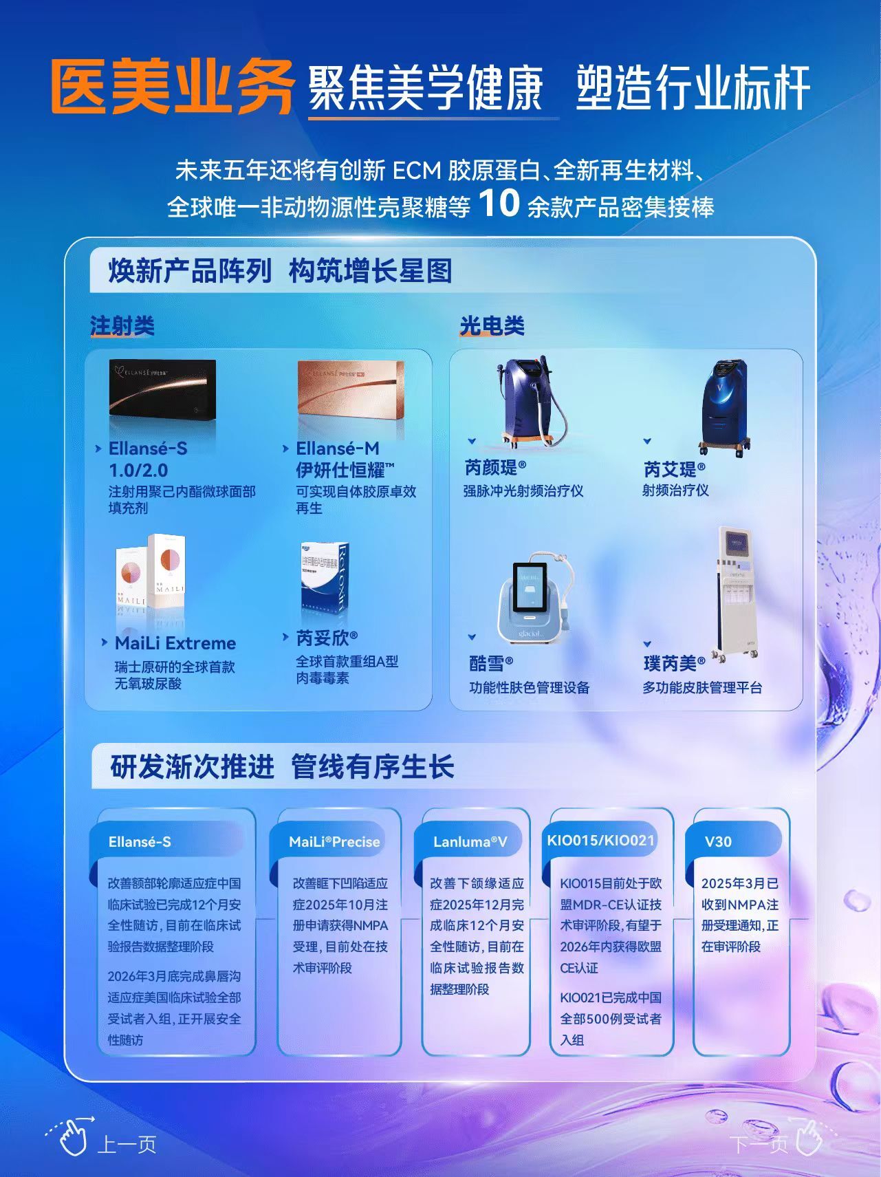 此外,Glacial®spa酷雪、Reaction®芮艾瑅®及新一代“少女光”Renotion芮颜瑅等能量源设备(EBD)产品已进入超过400家机构,机构覆盖率较2024年实现翻倍。生美设备Préime DermaFacial已顺利上市。
