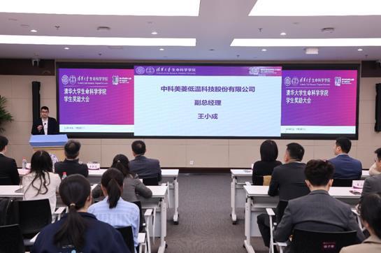 颁奖现场,中科美菱副总经理王小成首先向清华大学生命学科创建100周年致以热烈祝贺,随后发表致辞。他表示,中科美菱深耕超低温存储领域24载,始终以“复兴有我,产业报国”为初心使命,依托产学研深度融合优势,持续攻坚超低温存储、生物样本库、实验室核心设备等关键技术领域,全力打破国外技术垄断,筑牢国产高端科研装备自主可控根基。企业设立奖学金,既是对优秀青年学子的表彰与激励,更希望以校企合作为桥梁,推动高校基础科研与产业应用深度衔接,为青年学子卸下科研后顾之忧,让他们心无旁骛探索生命奥秘、追逐科学理想,以青春力量助力中国生命科学创新突破。