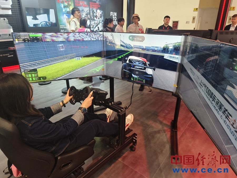 观众在体验场地赛车模拟。中国经济网记者王婉莹/摄