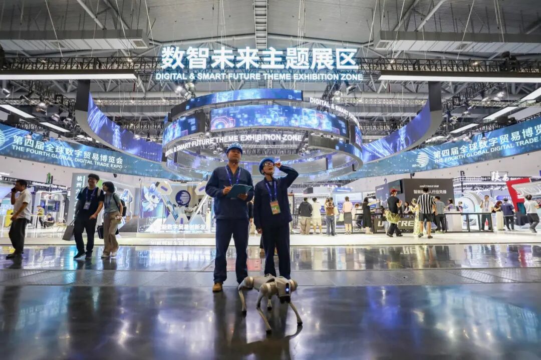 杭州供电公司员工借助AI设备开展全球数字贸易博览会保电工作。(姚靖霖)