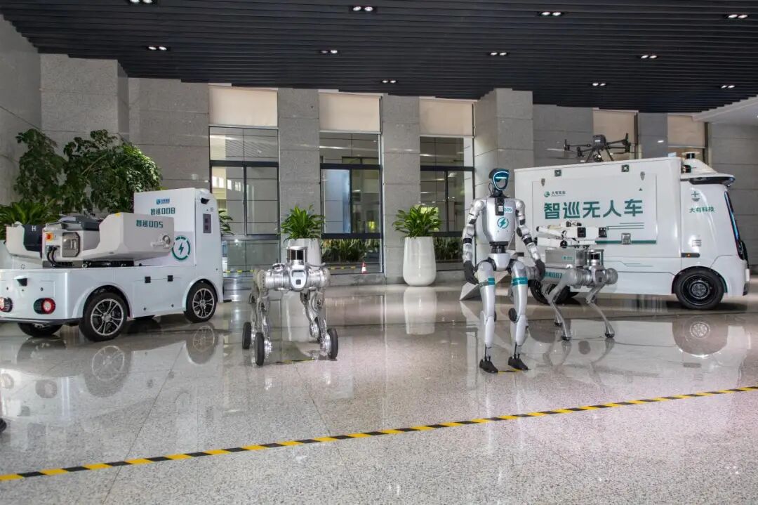 在国家电网杭州人工智能创新实训基地,人工智能巡检员们集中亮相。(陈震扬)