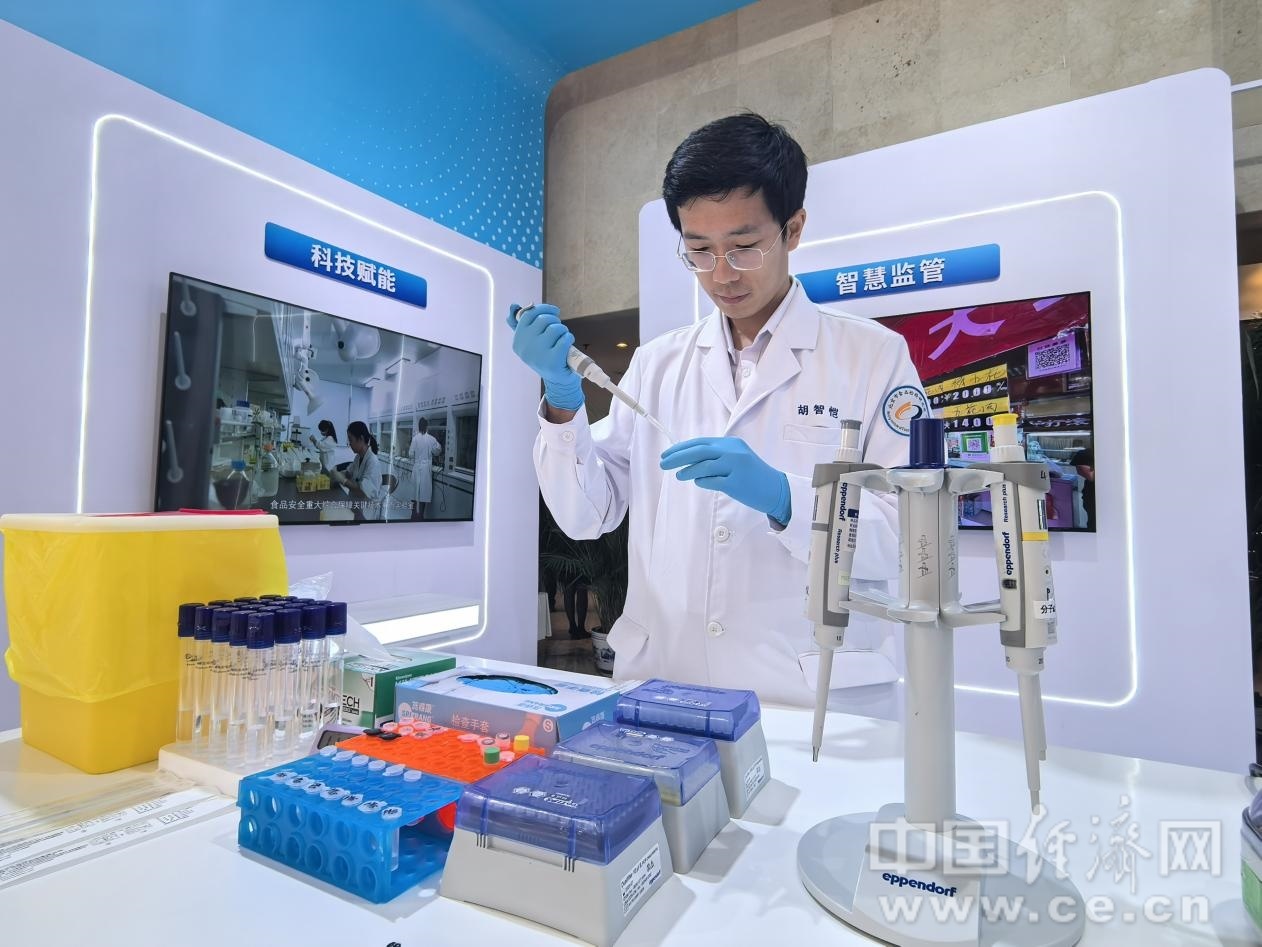 北京市市场监督管理局现场工作人员演示食品中致病菌快速筛查检测。中国经济网记者魏金金/摄