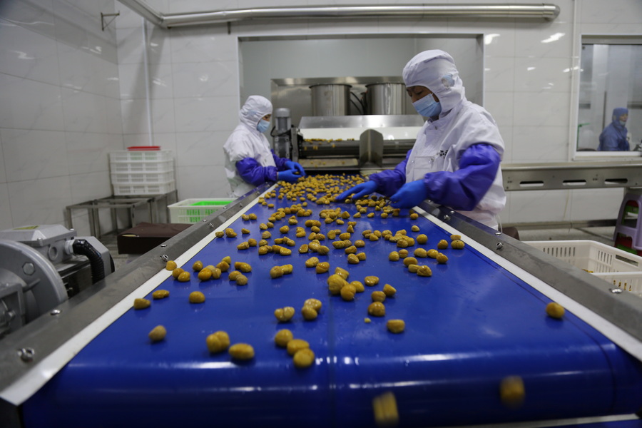 品牌赋能下,龙头企业扛起了板栗深加工的大梁。在秦皇岛百峰食品有限公司的生产车间内,自动化生产线上颗颗板栗经筛选、去壳、杀菌等程序后,变身板栗仁、冰栗等深加工产品。“公司采用速冻锁鲜技术破解板栗‘半年鲜’的短板,全面提升产品附加值。”公司顾问杜青刚介绍,这些产品不仅畅销国内市场、入驻盒马鲜生等大型商超,还远销日韩、欧美等国家和地区。截至目前,企业的板栗及深加工产品订单额达1.23亿元,较去年同期增长10%,展现出良好的市场增长活力。