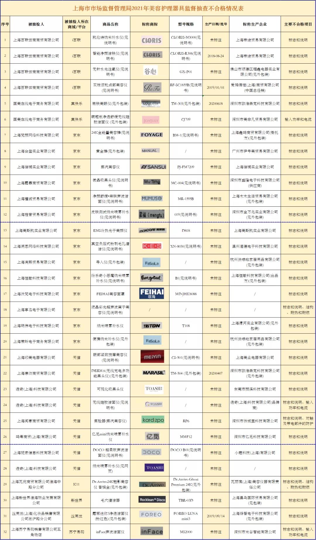 中新经纬10月12日电 “上海市场监管”微信号12日消息,经上海市场监管部门检验,有32批次美容护理器具不合格。