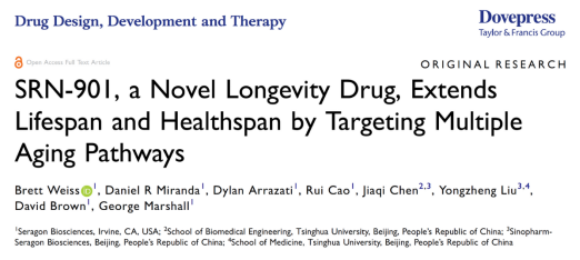 国际权威学术期刊《药物设计、开发与治疗》(Drug Design, Development and Therapy)刊发的最新研究显示,一种名为SRN-901的新型药物使哺乳动物寿命破纪录延长33%、衰老速度减缓70%、肿瘤发生率降低30.53%。该项研究由赛诺根公司、清华大学及国药赛诺根的科学家组成的联合团队发布,研究结果和相关论文引发了广泛关注。