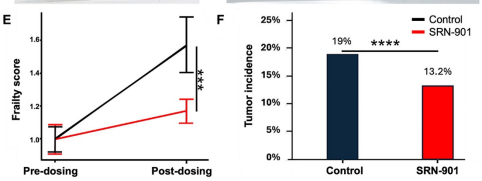 研究团队还采用24项临床虚弱指数评估体系量化健康状态,结果表明SRN-901使小鼠衰老速度减缓70%,肿瘤发病率也下降了30.53%。