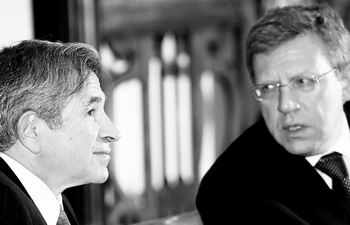6月9日,世界银行行长沃尔福威茨(左)与俄罗斯财长库德林在新一届八国财长会议上谈话。