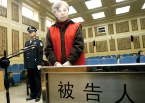 上午9点半,身着红色号服的陈天晓被带入法庭,55岁的她头发花白,面色苍白。进入法庭等待判决的陈天晓始终一言不发。当法官开始宣读判决书时,陈天晓变得有些紧张,她将头低埋下去,紧抿着嘴,双手也紧紧攥在了一起。
