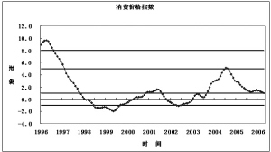 图5:1996年以来经季节调整后的消费价格指数增速趋势