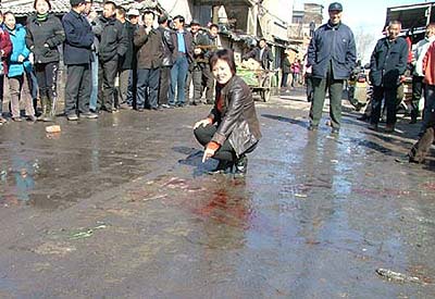 几名围观的妇女对记者说,附近到处是人肉,地面上流淌着一大滩血,吓死人了!120救护车到达现场后,确认三人已经死亡。
