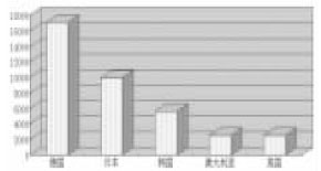 从轿车进口的国家(地区)分布看,从德国进口17044辆居第一位,从日本进口9943辆居第二位,以上两国进口量占轿车总进口量的60.79%.其他顺序为,从韩国进口5603辆,从澳大利亚进口2518辆,从美国进口2506辆。